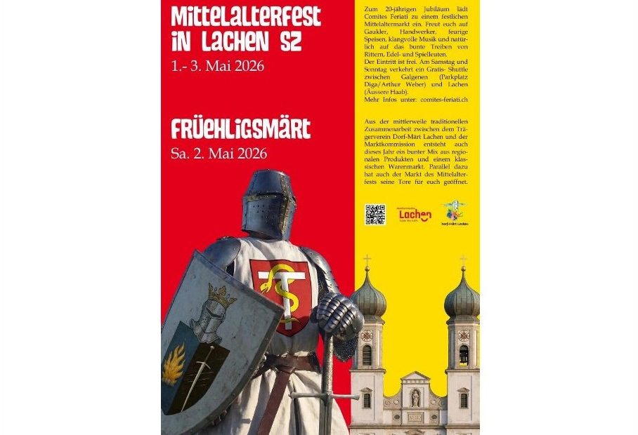 Vor zwei Jahrzehnten haben wir uns der Faszination des Mittelalters verschrieben – nun ist es Zeit, dies gebührend zu feiern! Zu unserem 20-jährigen Jubiläum laden… Weiterlesen »Mittelalterfest Lachen 2026 + 20 Jahre Comites Feriati